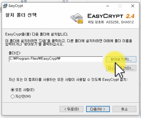 미국방부가 권장하는 AES 256bit 및 SHA 512 bit 알고리즘을 적용한 파일 암호화 프로그램으로