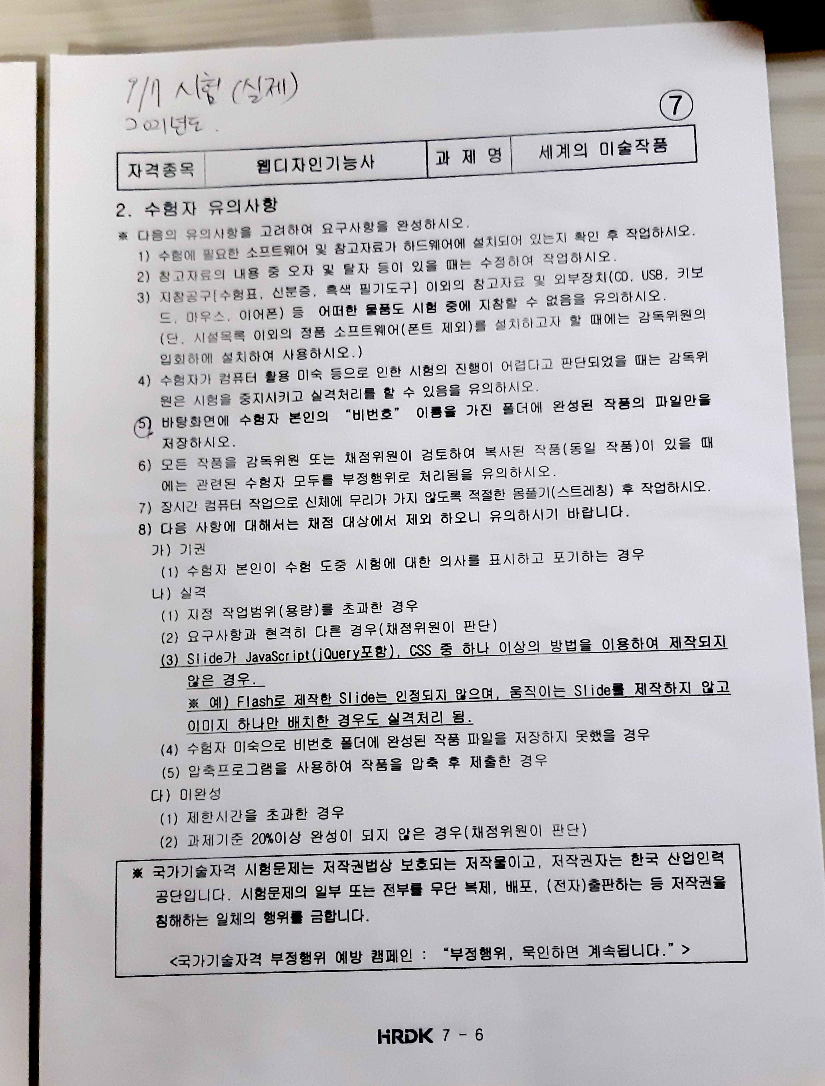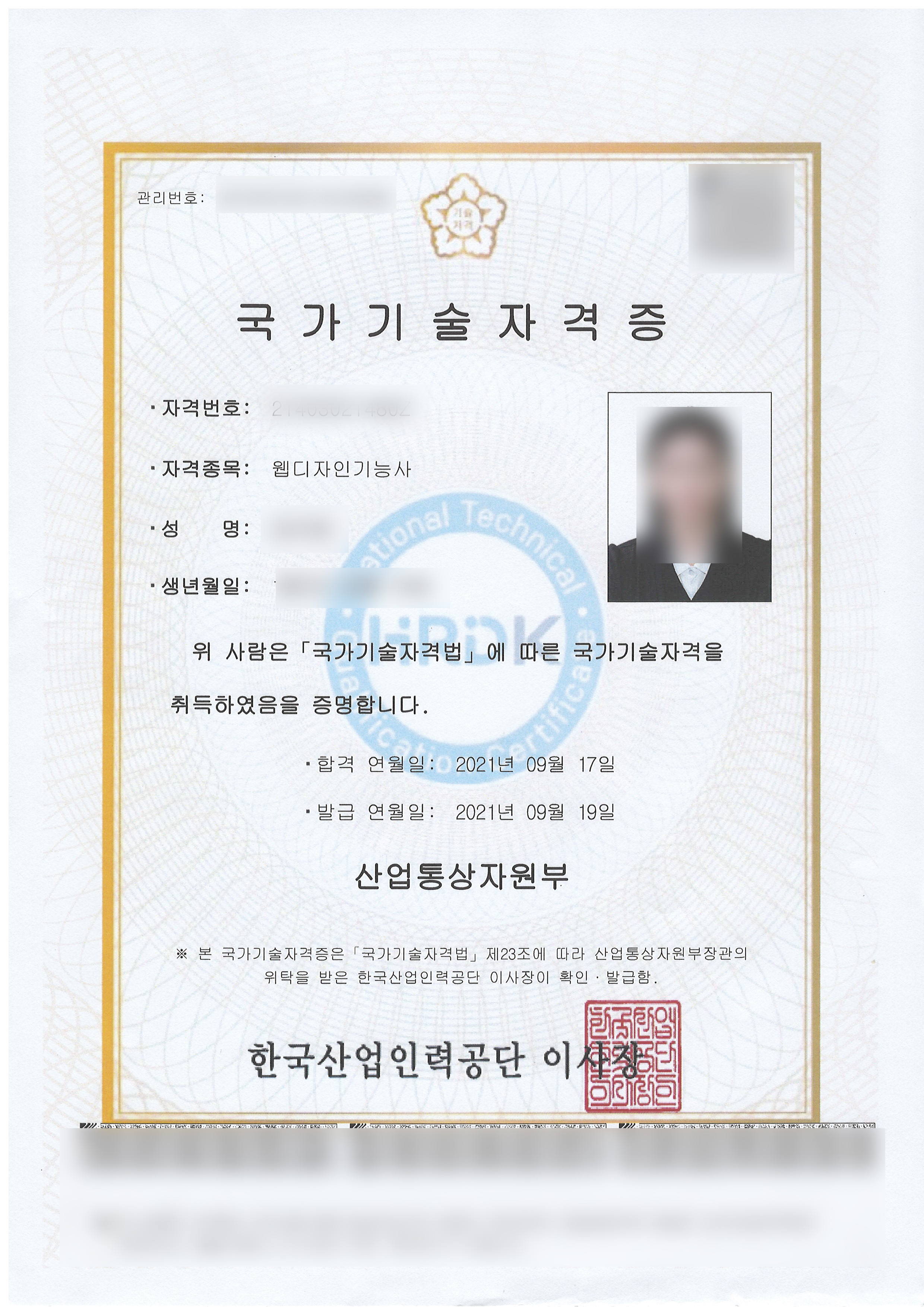 웹디자인 기능사 자격증을 프린트했다.