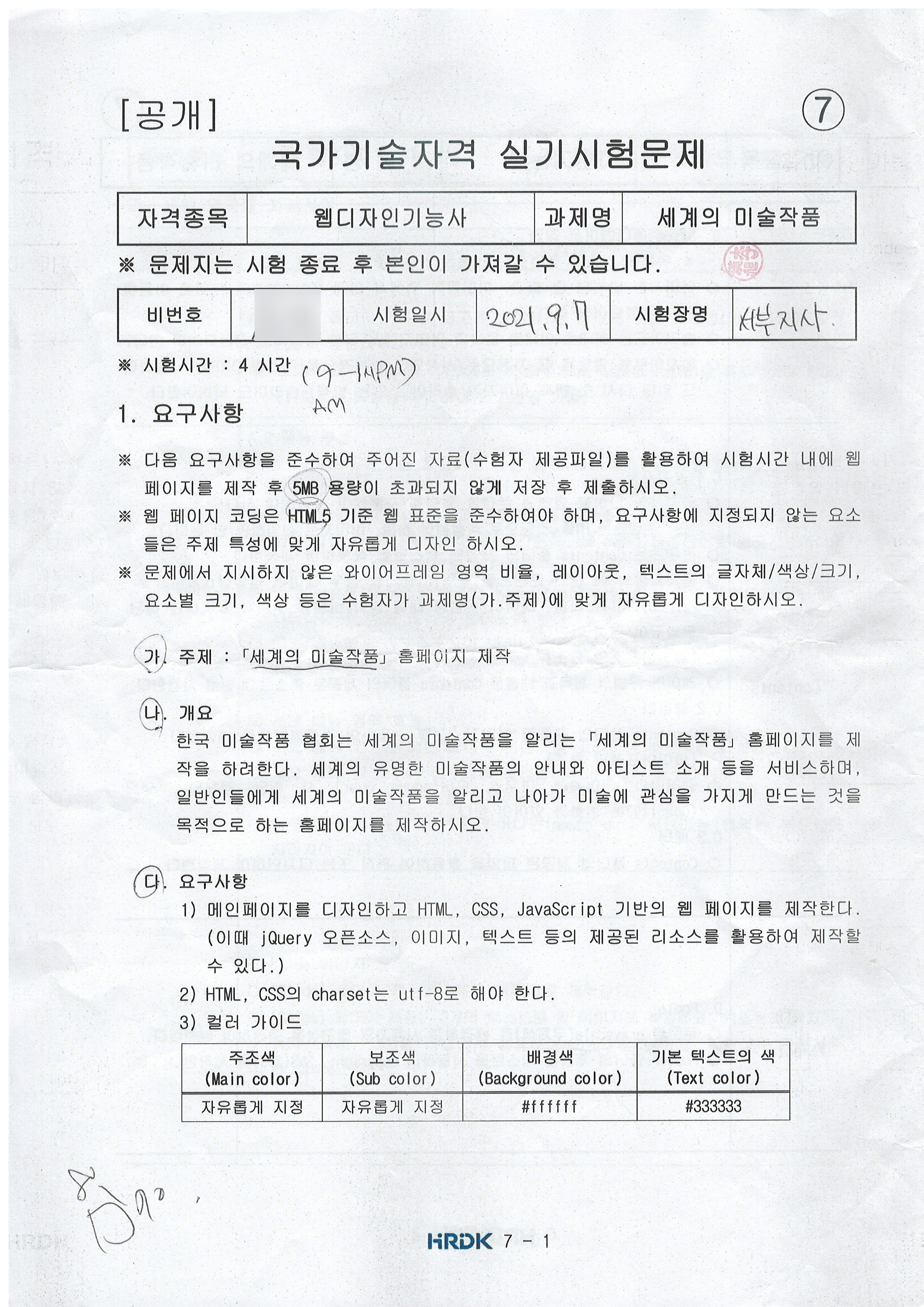 실기시험은 9월7일 화요일에 서울서부국가자격시험장에서 실기시험을 봤다.